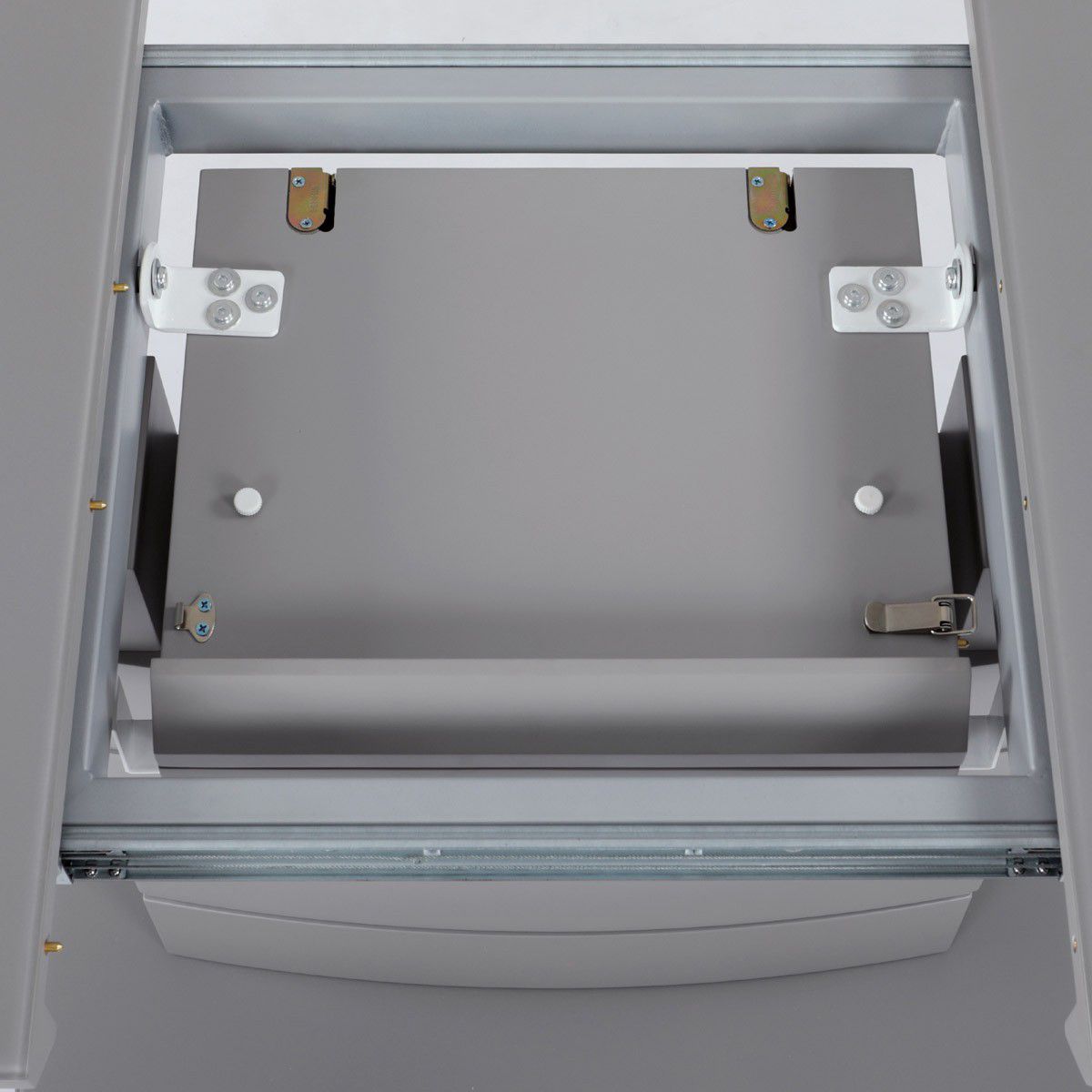Designový jídelní rozkládací stůl o rozměru 110 + 40 x 70 cm. Vrchní stolová deska je tvrzeného skla tl. 4 mm v šedé barvě. Podkladová deska, centrální noha a díl rozkladu je z MDF v šedé matné barvě. Podesta je z také z MDF a krytá šedým sklem. Ze spodní části opatřená plastovými kluzáky, eleminujícími poškození povrchů tvrdých podlah. Mechanické součásti jsou kovové. Stůl jistě zaujme svým nadčasovým designem i skvělým zpracováním detailu a v neposlední řadě i barvou a stane se elegantním prvkem v moderních i klasicky laděných jídelnách, kuchyních a obývacích prostorách. Výška stolu je 76 cm. Ke stolu je možné umístit až 6 židlí.
