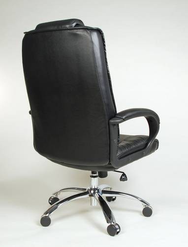 Kancelářské křeslo - kvalitní, ergonomicky tvarované křeslo, čalouněné TOP hovězí kůží vysoké kvality. Křeslo je vybavené pevným kovovým chromovaným křížem o průměru 70 cm s designovými dvojkolečky a plastovými čalouněnými područkami. Tato pevná konstrukce umožňuje nosnost do 120 kg hmotnosti sedícího. Vnitřní sedací plocha křesla vč. vrchní plochy područek, je čalouněna kvalitní TOP – hovězí kůží, boční a zadní části kvalitní stejnobarevnou koženkou. Kůže na střední části opěráku (pod opěrkou hlavy) a sedáku je jemně perforovaná. Křeslo je vybaveno houpacím mechanismem umožňujícím nastavení tlaku dle hmotnosti sedícího a zajištění v přední – základní poloze. Vzhledem k výšce opěradla a opěrky hlavy je křeslo vhodné pro výšku postavy 175 - 185 cm.