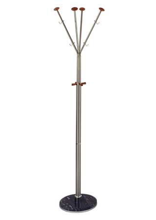 Stojanový kovový věšák, vhodný do předsíně nebo kanceláře. Výška 185 cm Barva koncovek třešeň. Těžká černá základna zajišťuje stabilitu věšáku
