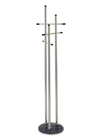 Stojanový kovový věšák, vhodný do předsíně nebo kanceláře. Výška 190 cm Barva koncovek černá. Těžká černá základna zajišťuje stabilitu věšáku