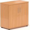 Nízká kancelářská skříň z laminované dřevotřísky, nastavitelné nohy, vybavena 1 policí, nosnost 25 kg, 3 typy dezénů