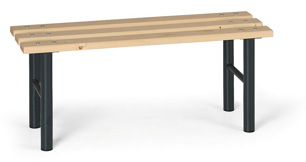 Šatní lavice do šaten, převlíkáren, vhodné i do mírně vlhkého prostředí. Délka lavice je 1 m. Podnoží je z ocelovýc h trubek průměru 40 mm, pro délku 1 m se používají dvě tyto podnoží. Na konci podnoží jsou plastové kluzáky. Povrchová úprava podnoží je práškovým lakem antracit RAL 7016. Sedací plocha je ze smrkových latí o průměru 85 x 24 mm. Povrchová úprava voděodolným transparentním lakem. Lavice se dodávají v demontovaném stavu, lehká a rychlá montáž.