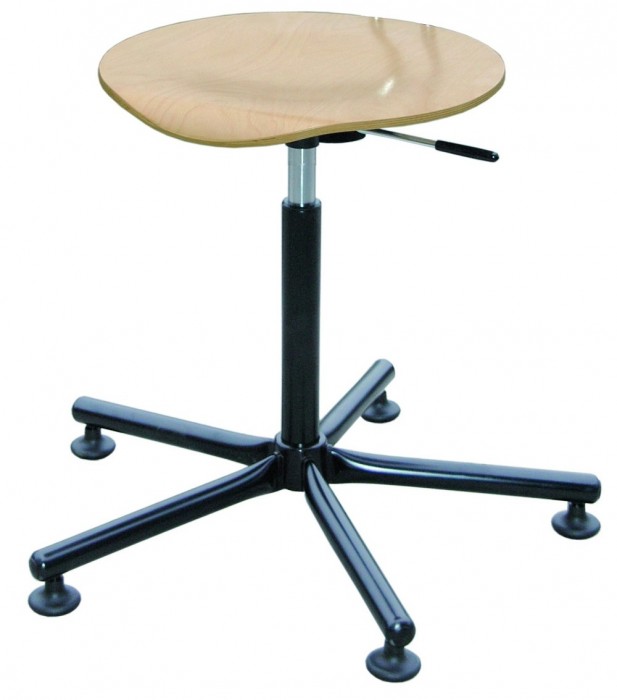 Pohodlná ergonomicky tvarovaná pracovní židle bez opěráku s mechanickým nastavením výšky sezení. Vhodným doplňkem je kruh pro uložení nohou nebo podpěra nohou, která mění svou výšku v závislosti na změně výšky sezení.