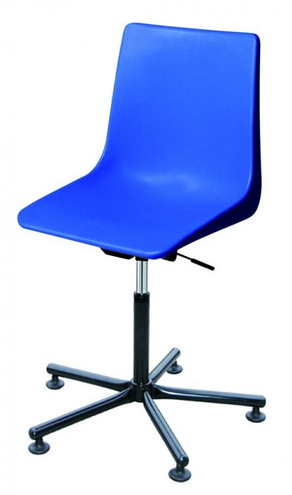 Pohodlná pracovní židle s plynovým pístem k nastavení výšky sezení. Plastová skořepina. Vhodným doplňkem je kruh pro uložení nohou nebo podpěra nohou, která mění svou výšku v závislosti na změně výšky sezení.