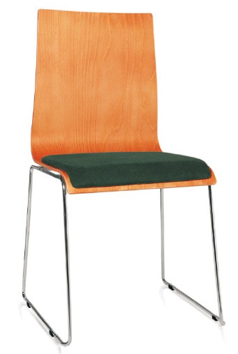 Skořepinová židle. Sedák a opěrák buková překližka s možností moření v několika odstínech, možnost čalouněného panelu sedáku a opěráku. Kostra ocelová chromová.