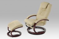 Relaxační křeslo s taburetem, koženka cappuccino/ořech