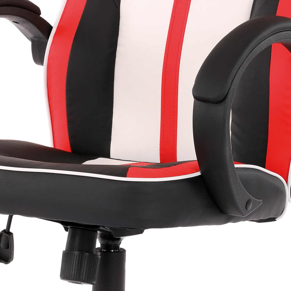 potah je kombinace červené, bílé a černé ekokůže, kopírující linie židle